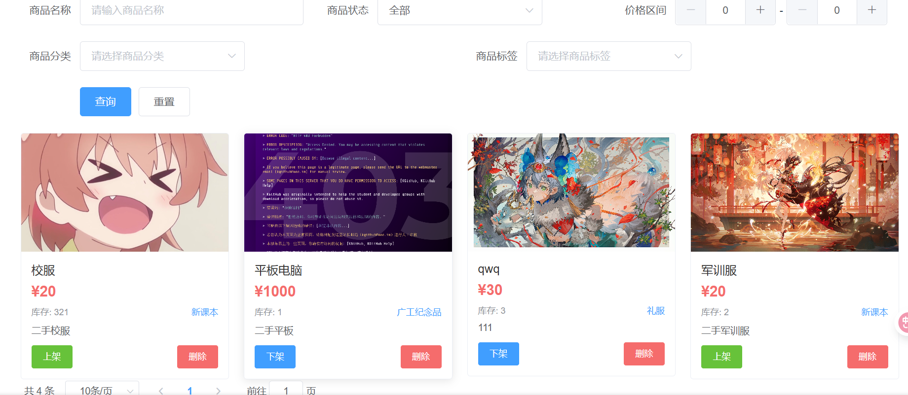 在售/已售商品管理功能模块