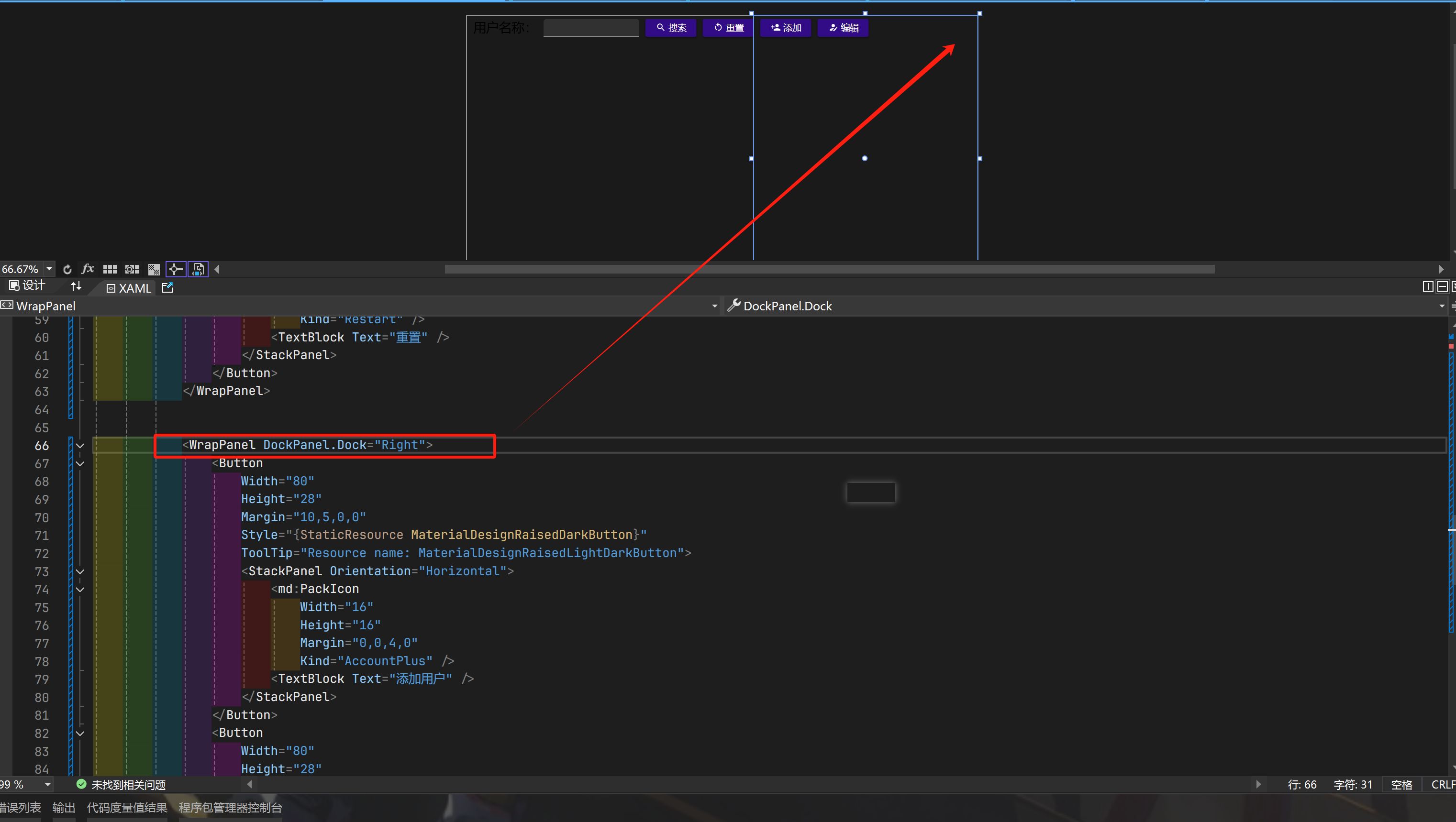 描述下问题:DockPanel下的WrapPanel 设置了DockPanel.Dock="Right"属性后并没有停靠在窗口的最右边