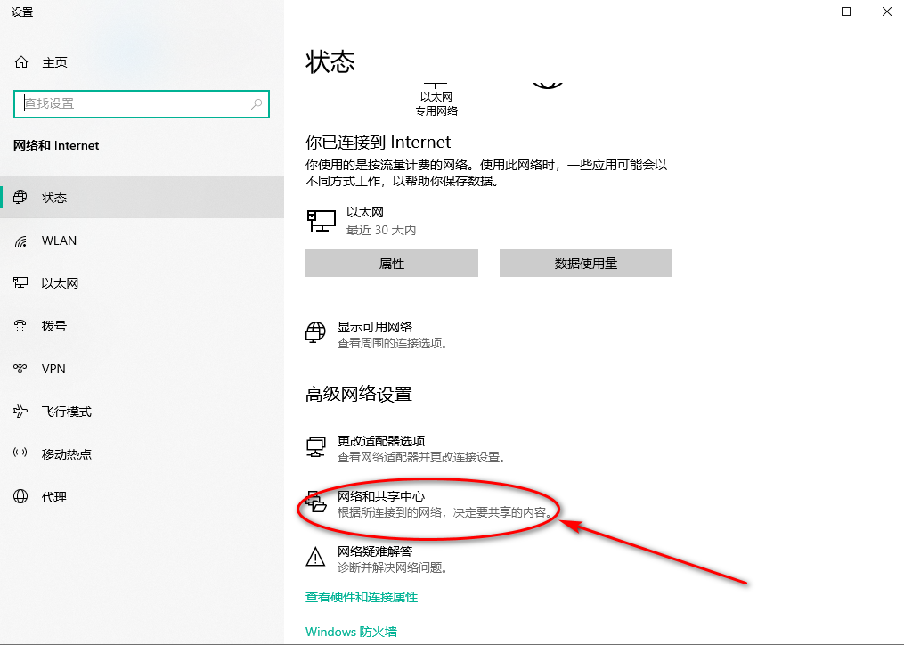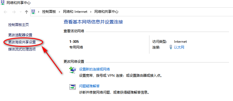 打开网络共享: