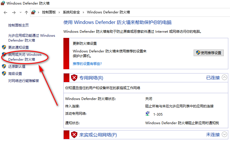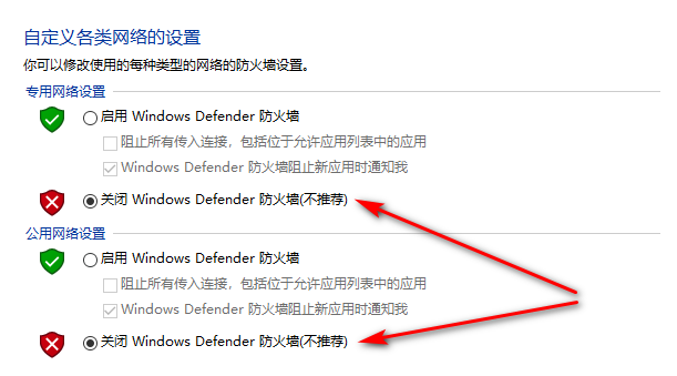 三、关闭windows防火墙: