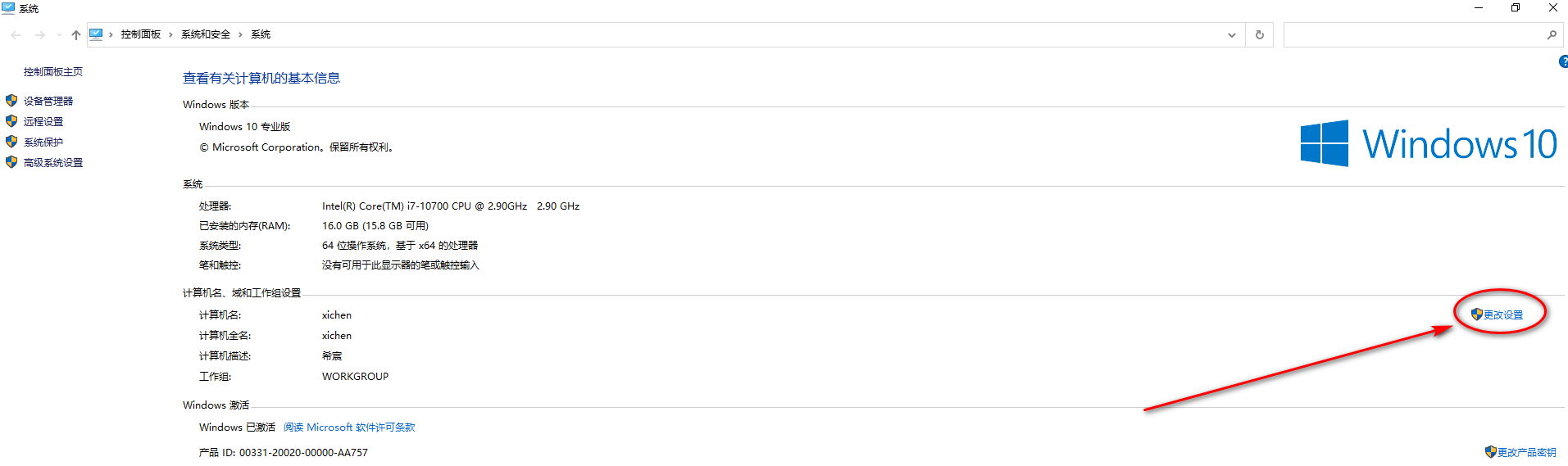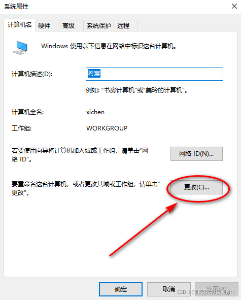 ,右键点击属性,点击下图所示“更改设置”