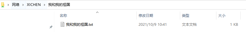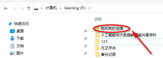 在你计算机中的盘符下,创建需要共享的文件夹。如例子中“我和我的祖国”文件夹。