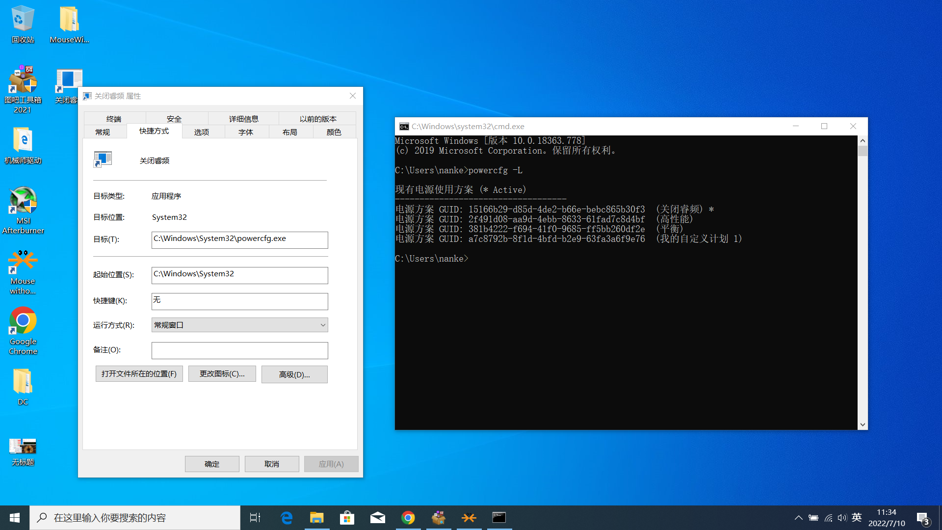 找到我们刚才打开的属性中的目标,在exe后面输入一个空格-setactive空格GUID