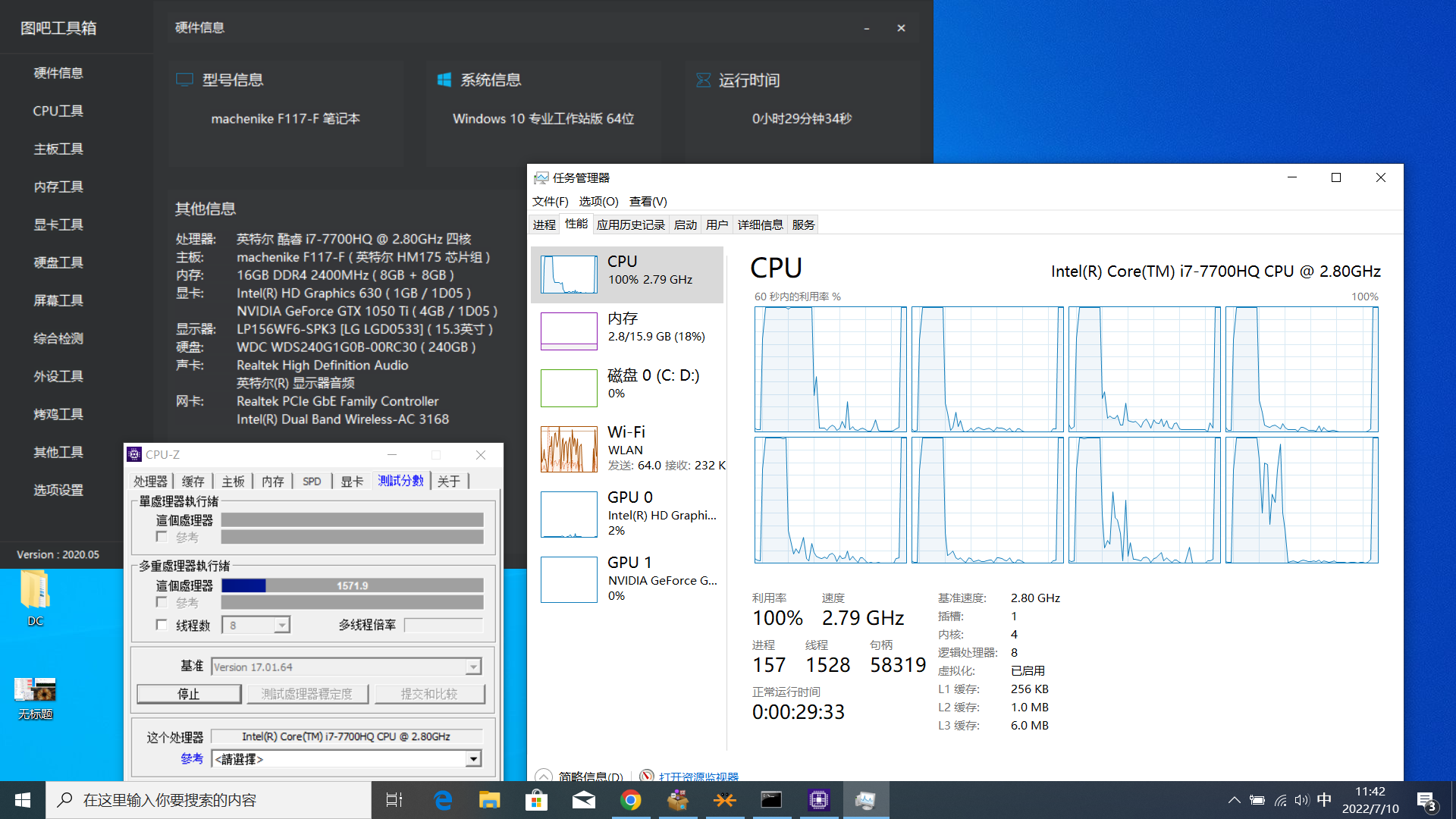 基频为2.8GHz,负载跑分下稳定在2.79GHz