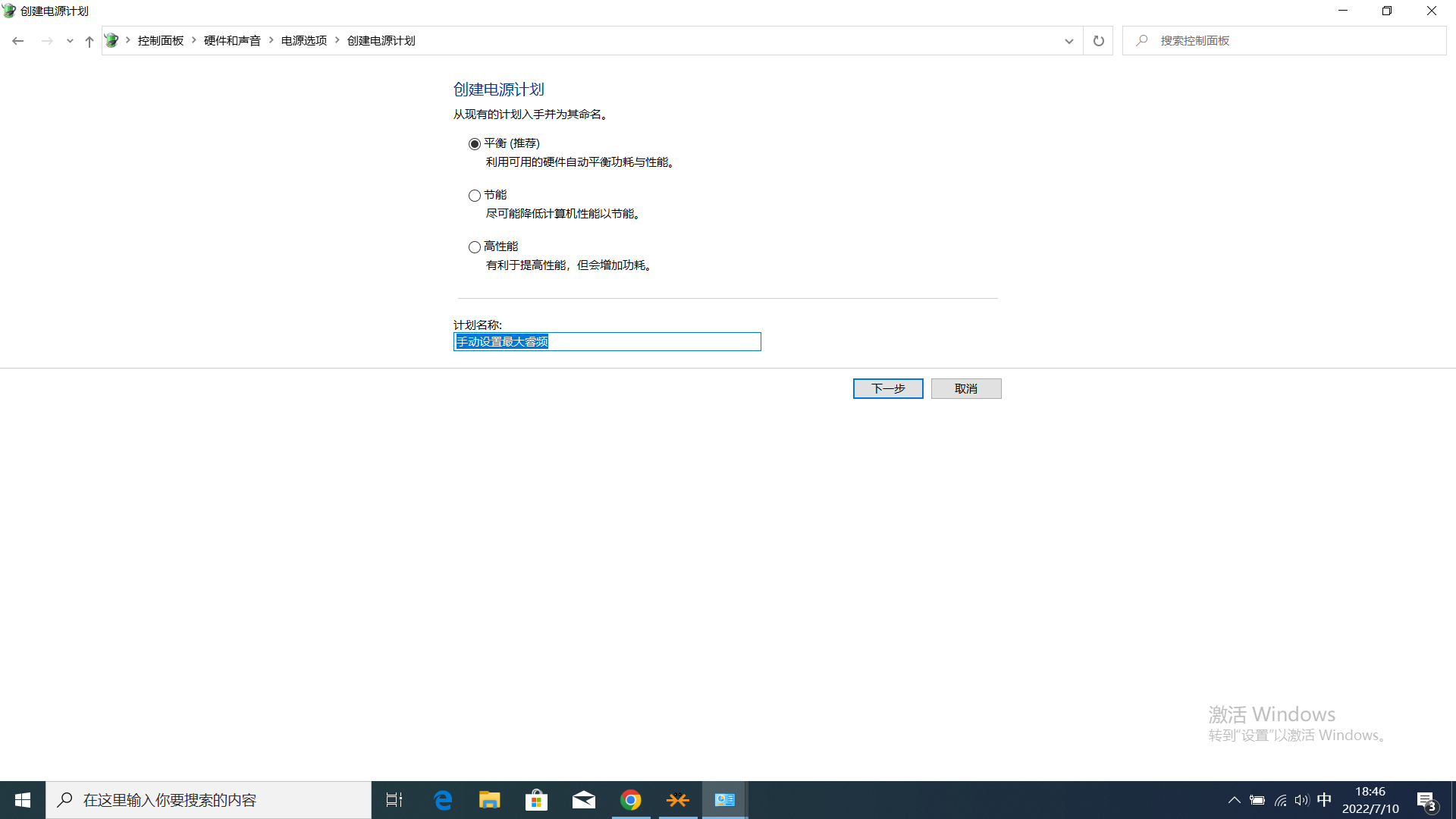 无需重启电脑,创建电源计划:命名为关闭睿频