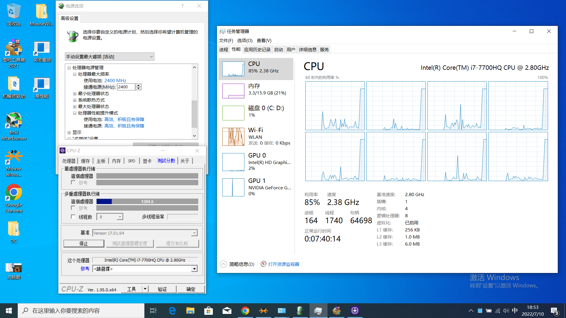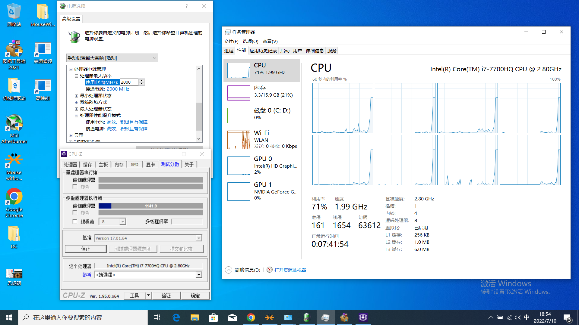 高性能模式:单核稳定在3.39GHz,多核稳定在3.54GHz(17年的本子还是很能打的哈哈哈吗)