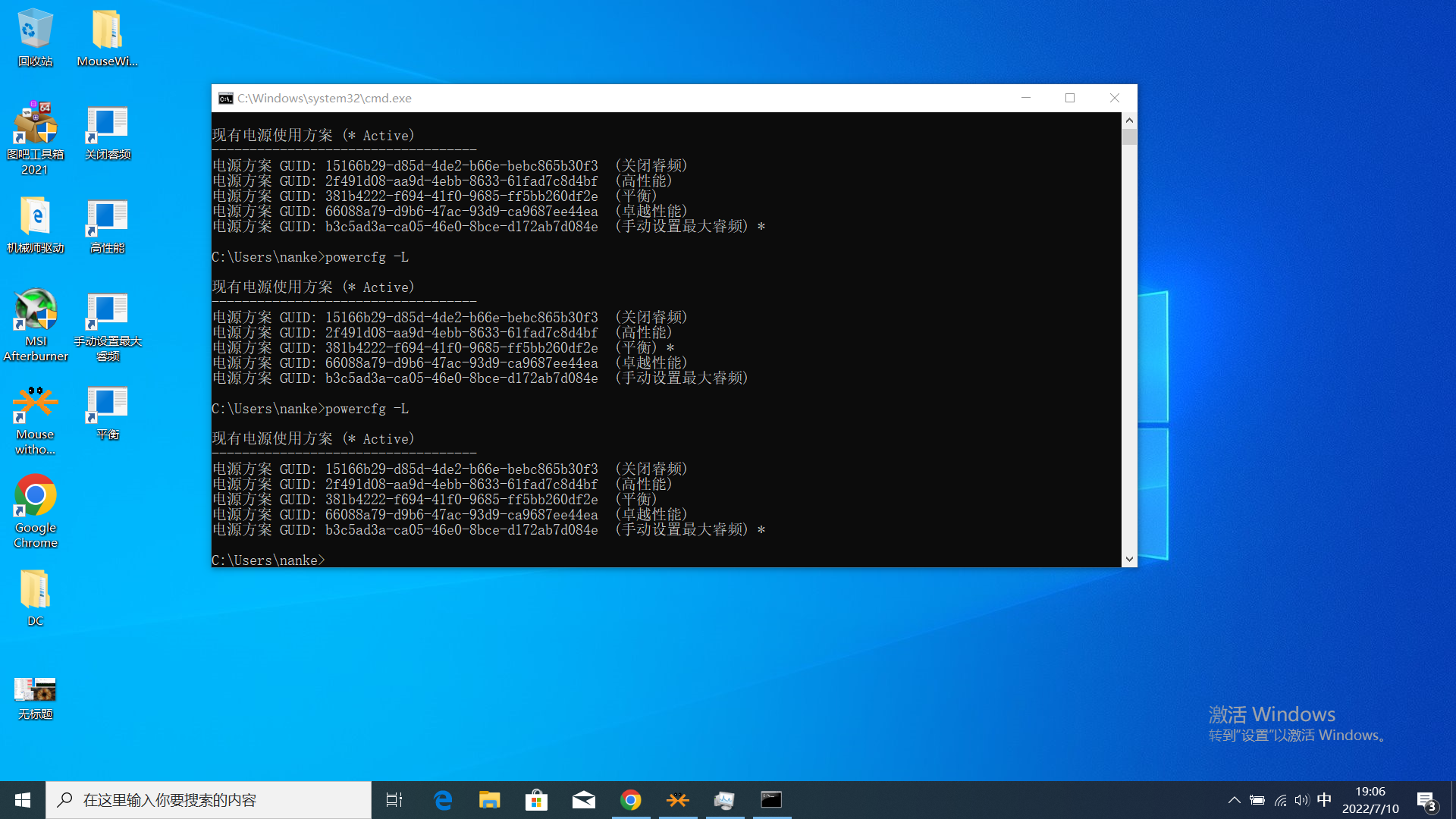win+r输入cmd回车:输入powercfg -L查看我们已经创建过的电源计划GUID