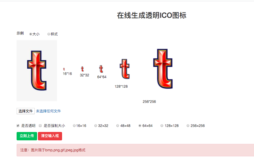 在线制作生成ico透明图标—指定大小 链接为:http://ico.toolscat.com/