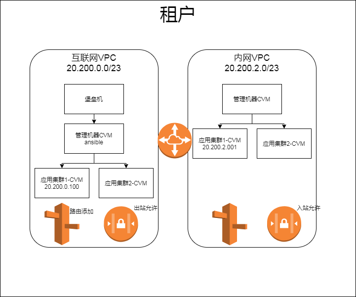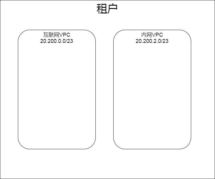 如图所示,我们在租户下创建两个VPC,一个部署互联网需要访问的系统,一个部署租户内部的系统。
