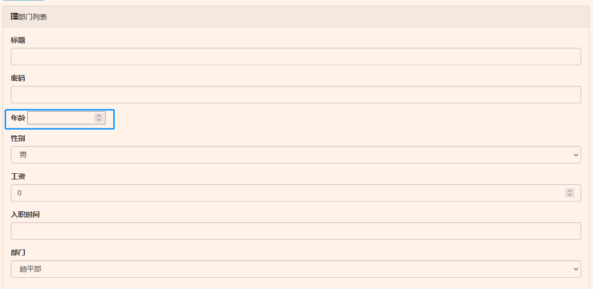 - field有特定值时,例如“男”、“女”,html最终呈现为下拉框选项