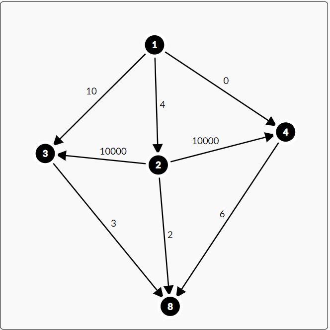 最短路径满足条件是对现在的所有 [u->v] 边 都有: d[u] + cost <= d[v]