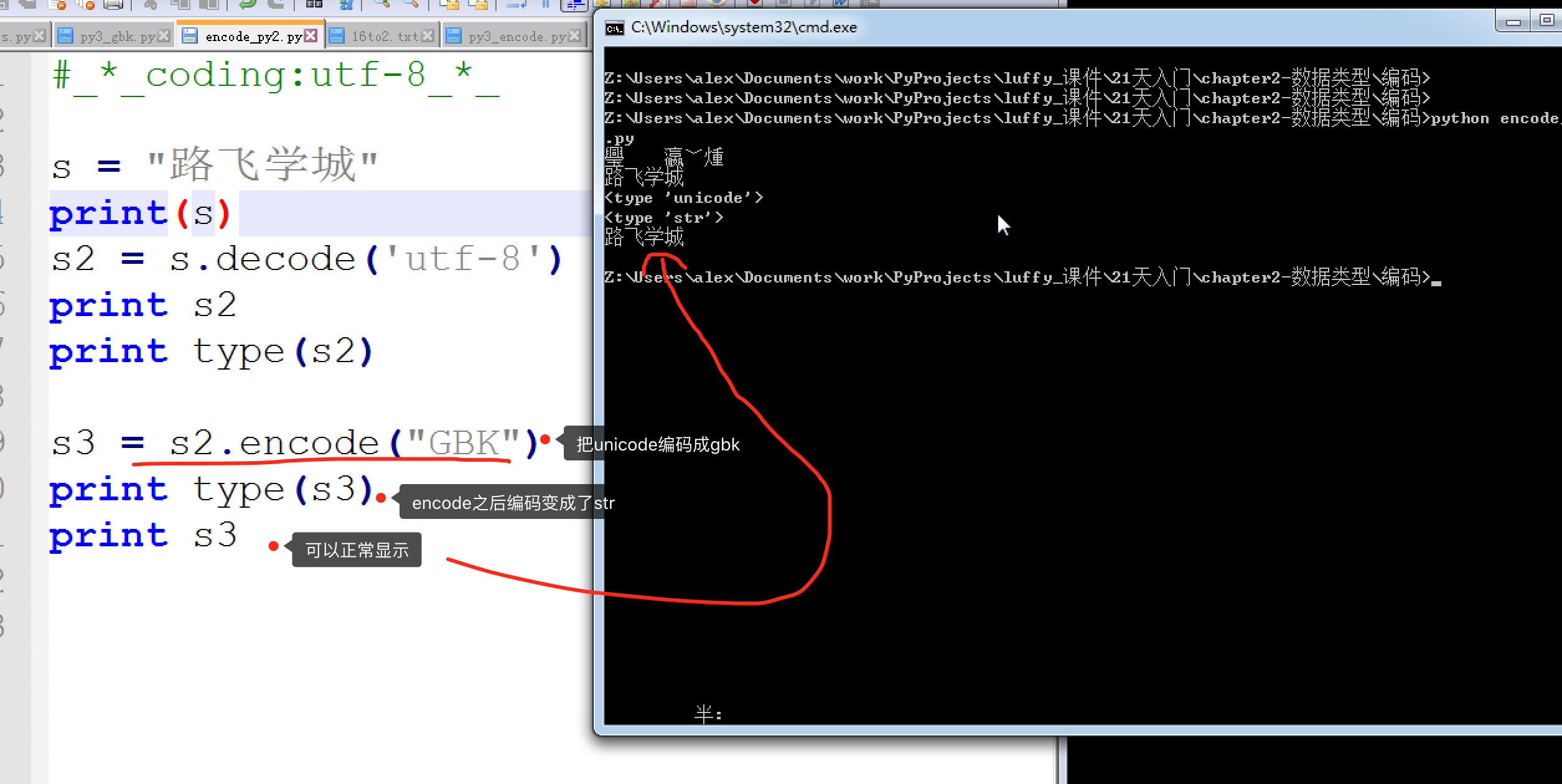Unicode --> encode 编码 --> GBK / UTF-8 ..decode示例