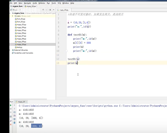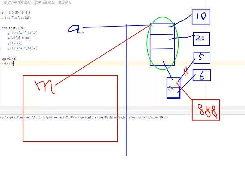 76-深浅拷贝-参数的传递-不可变对象含可变子对象-内存分析
