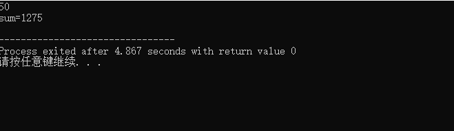 #include <stdio.h>> int main() { int n, sum; scanf("%d",&n); sum=n*(n+1)/2; printf("sum=%d\n",sum); return 0; }