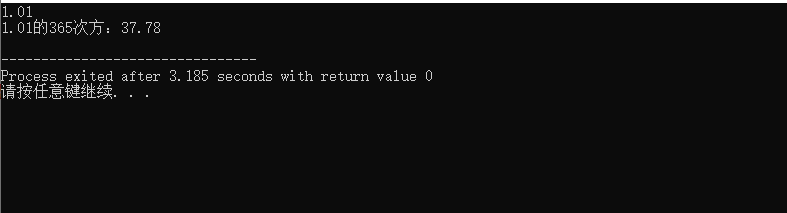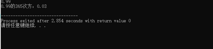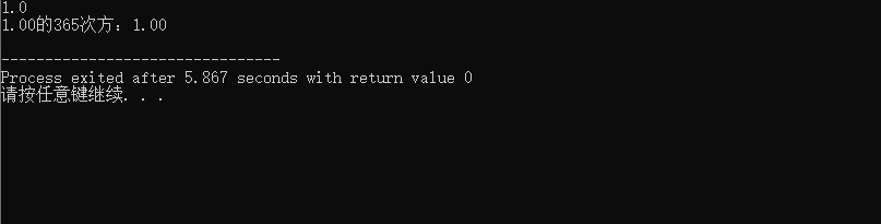 #include<stdio.h> #include<math.h> int main() { double x,ans; scanf("%lf",&x); ans = pow(x,365); printf("%.2fµÄ365´Î·½£º%.2f\n",x,ans); return 0; }