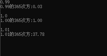 #include<stdio.h> #include<math.h> int main() { double x,ans; while(scanf("%lf",&x)!=EOF) { ans=pow(x,365); printf("%.2fµÄ365´Î·½:%.2f\n",x,ans); printf("\n"); } return 0; }