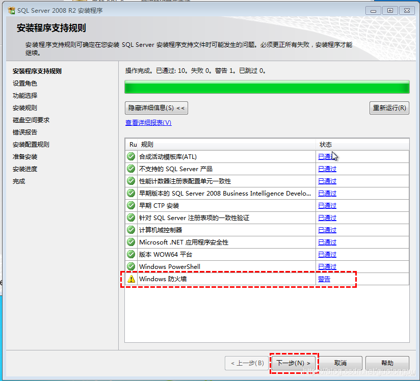 安装程序支持规则,[防火墙可以关闭!]
