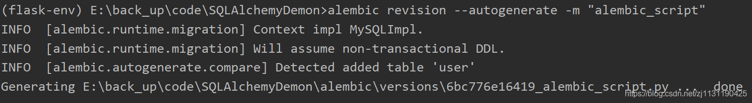 在实际的开发环境中,经常需要去修改数据库的行为,一般不回去直接修改数据库,而是将数据库的ORM模型进行修改,然后再把模型映射到数据库中。利用前面介绍的alembic可以实现此功能。在flask中,通过flask-migrate实现此功能,flask-migrate是基于alembic的一个封装,并将其集成到flask中。因此所有的数据库迁移操作以及上都是通过alembic完成的。