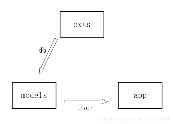 例如,下面的app文件和models文件,models文件需要导入app文件中的db,app文件需要到models文件中User,就会造成文件之间循环引用的问题: