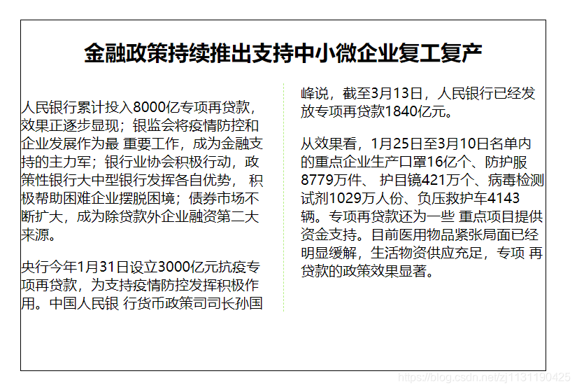 <h2>金融政策持续推出支持中小微企业复工复产</h2>