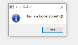int ret2 = QMessageBox::information(this, "Tip dialog", "This is a book about Qt", QMessageBox::Yes);