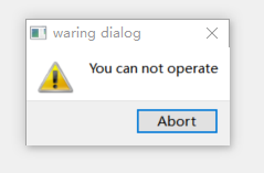 int ret3 = QMessageBox::warning(this, "waring dialog", "You can not operate", QMessageBox::Abort);