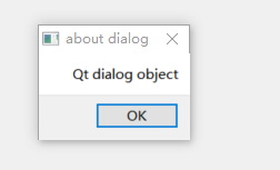 QMessageBox::about(this, "about dialog", "Qt dialog object");