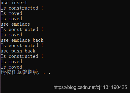 在vector中,使用push_back发生了一次构造和两次移动,而使用emplace_back只发生了一次构造。