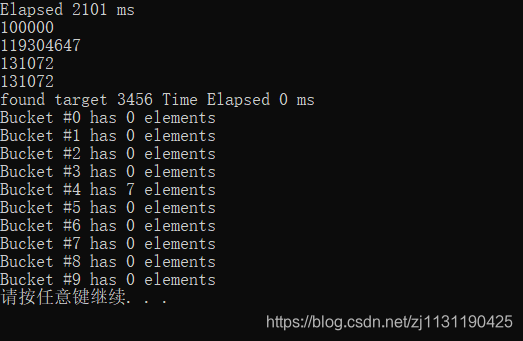从结果可以看到,bucket的数量居然是大于元素的个数,实际上,bucket的个数确实是大于元素个数,因为从上面的hash table图可以发现,有的bucket中存放了多个元素,有的hash table中却是空的。bucket的个数大于元素个数是为了避免一个bucket过长(会降低查找元素的效率),所以每当元素个数大于bucket的个数的时候,bucket的个数就会按照两倍扩充,然后将元素打散,重新按照一定的规则计算元素放置的位置。