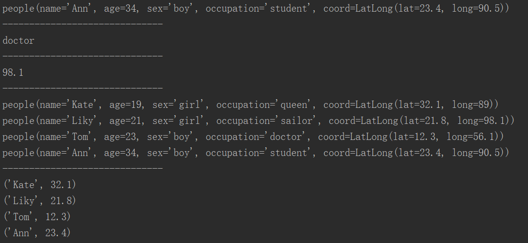 people = namedtuple('people', 'name age sex occupation coord') # feildname参数也可以是这样