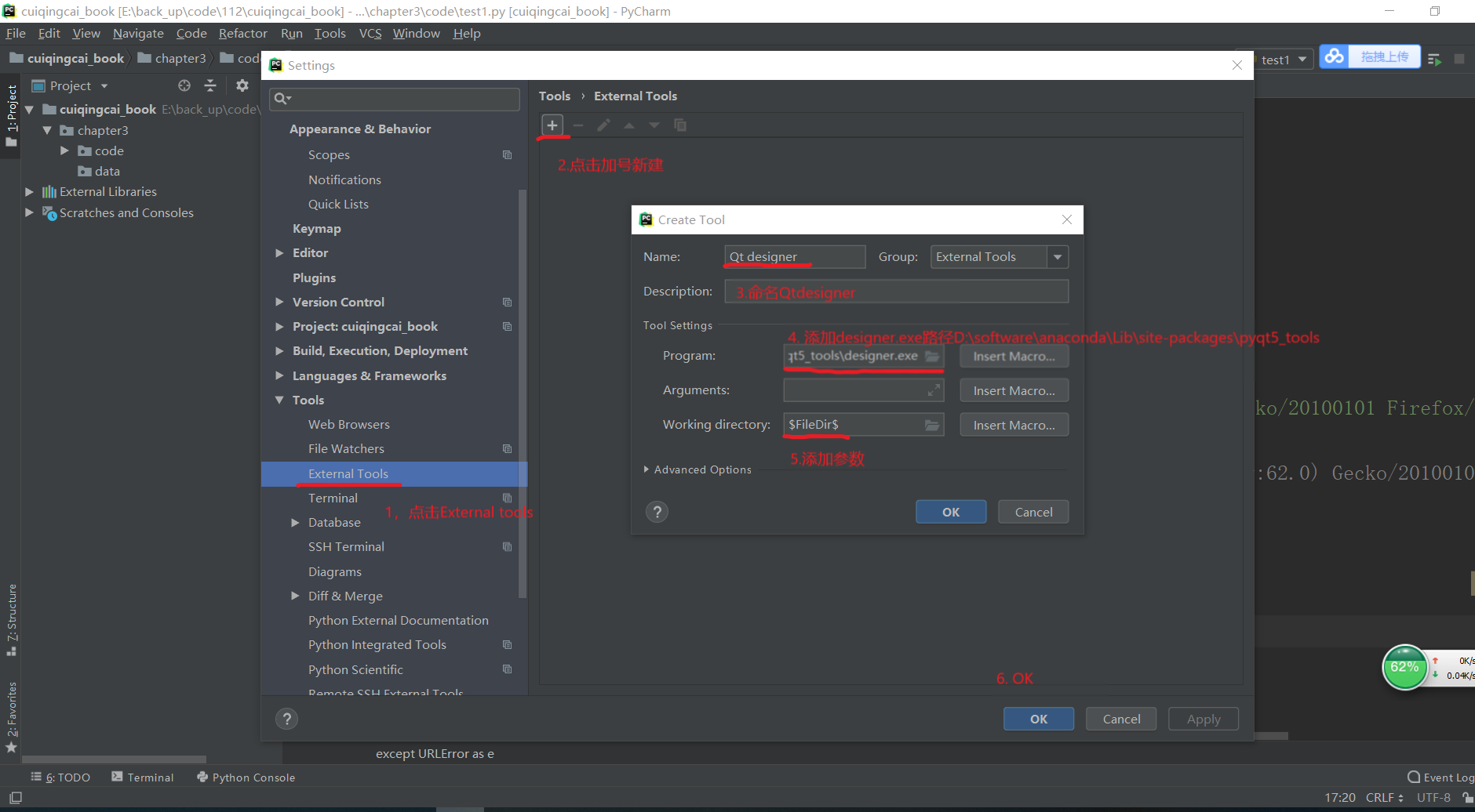 打开pycharm配置,实现在pycharm中打开Qt designer,生成Qt文件zai