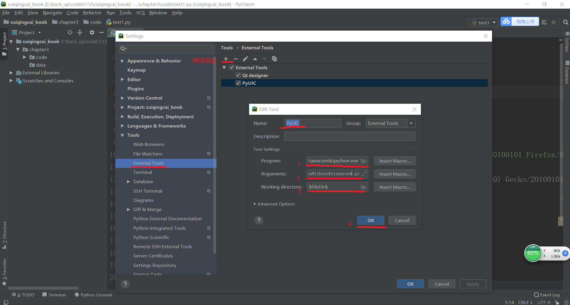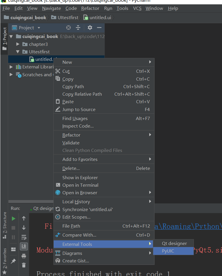 继续再新建一个“PyUIC”,用来将Qt界面转化为py代码