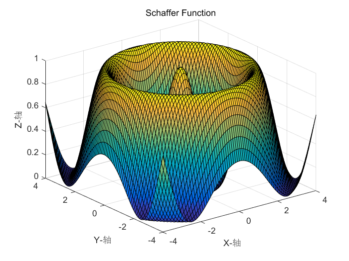 % Z = 0.5-((sin(sqrt(X.^2+Y.^2)).^2)-0.5)./(1+0.001.*(X.^2+Y.^2)).^2;