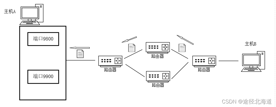 将UDP数据包交给主机A的某一个套接字则是由UDP完成的。