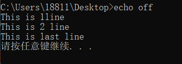 @echo off 表示执行这条命令之后关闭所有命令的回显(包括当前这一条)