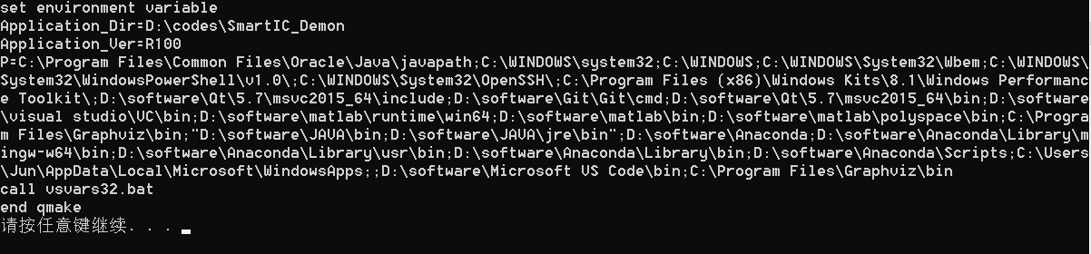 call "D:\software\visual studio\VC\vcvarsall.bat"