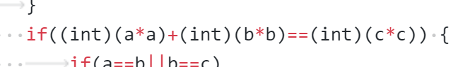 由于精度问题a^2+b*2!=c^2,所以更改为上述表达式测试点通过,测试时等腰直角三角形那个点没通过,经调试后发现会有两个输出结果,加了一个限制条件,测试点通过。