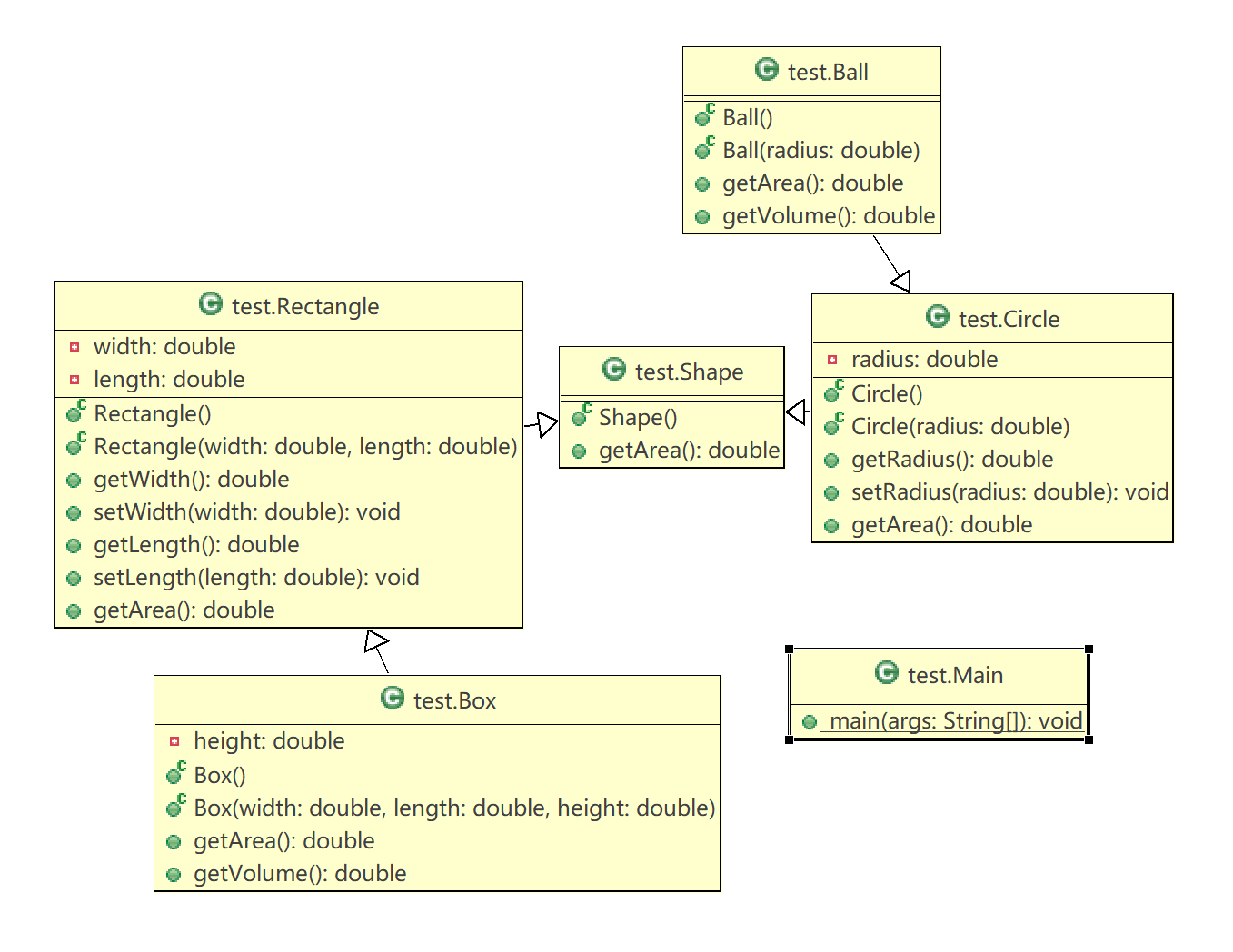 这个题目主要是考查类的继承,对于继承类,就是子类继承父类的办法,然后避免了代码的复用,做这一题的时候是这一次作业的最简单的一次,因为没有对比就没有伤害,其他题目太难了,所以拿到这题的时候,就是千万不能忽略一点,就是在子类构造器中添加一个输出语句,答案中有这个点,一定不要忘记这个点,还有就是对于子类中对父类方法的重写,我认为对于这一题一定要,注意判定输入值的条件,即半径或长和宽的长度要大于零。我认为可以采用封装性,即对类中的属性进行判断,然后直接调用求面积的方法。我认为这是对类的封装性的理解。类图和圈复杂度分析如下。