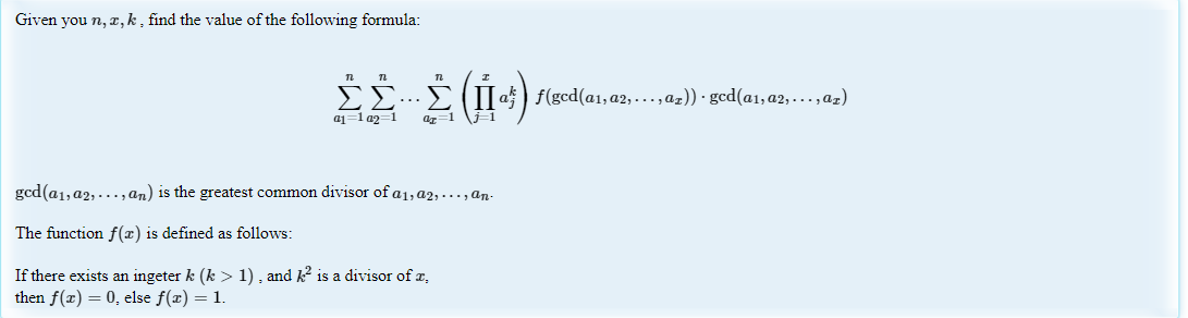 //ans = add(ans,mul(sub(sum[r],sum[l - 1]),g[n / l]));