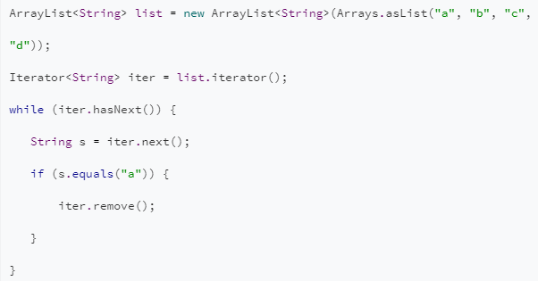 你可能知道解决这个错误的方式之一是使用迭代器(iterator)。而且,你可能认为Java中的foreach语句与迭代器(iterator)是非常相似的,但实际情况并不是这样。我们考虑一下如下的示例代码: