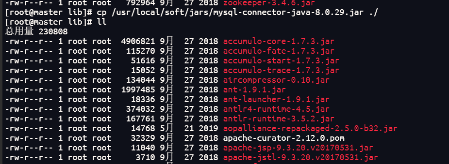 ## 将nysql驱动包上传到hive的lib目录下
