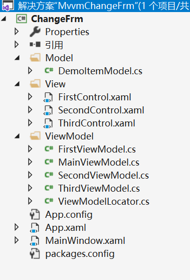 在网上搜了一下切换用户控件的方法,发现几乎都没有使用MVVM思想,我在阅读MaterialDesignToolkit项目源码时,发现该项目采用了MVVM思想来切换界面,根据其代码,写了一个小Demo,实现了界面切换,大家可以参考一下。
