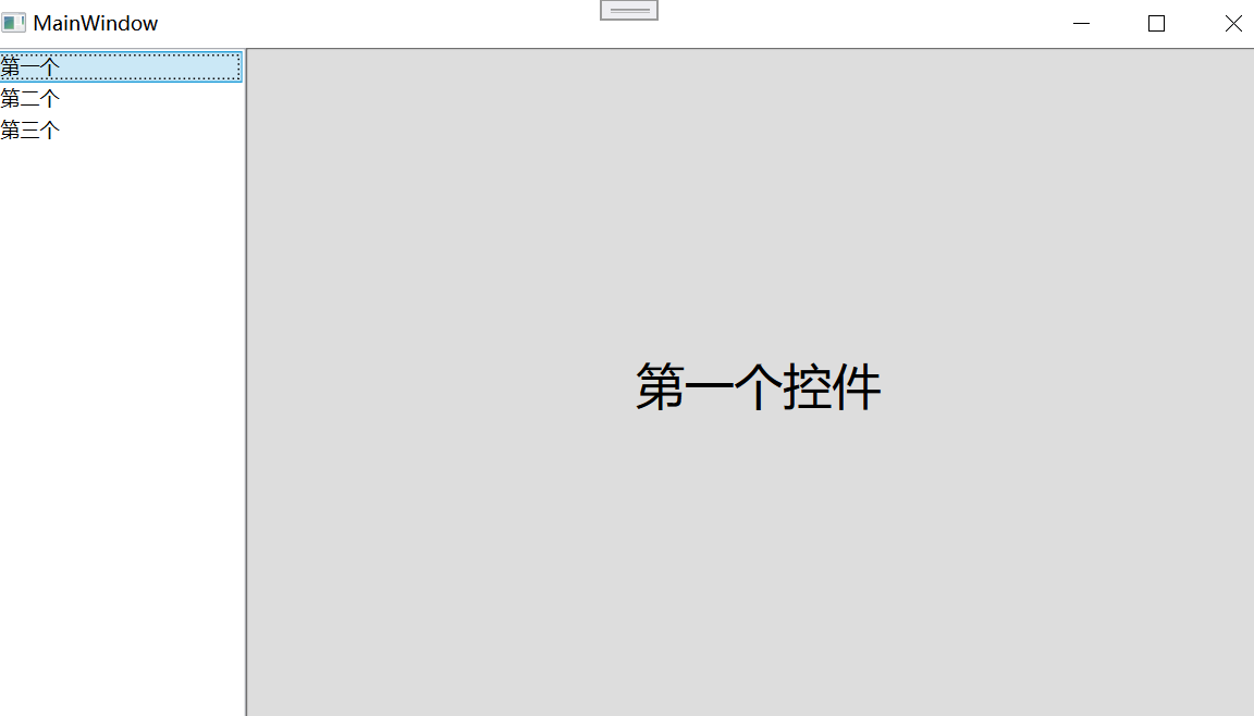 - MainWindow.xaml代码,使用参数绑定,将要显示的界面集合绑定至ListBox的ItemsSource中,要显示的界面绑定至SelectedItem中,ContentControl控件用来显示用户界面,将用户控件绑定到ContentControl.Content属性上。