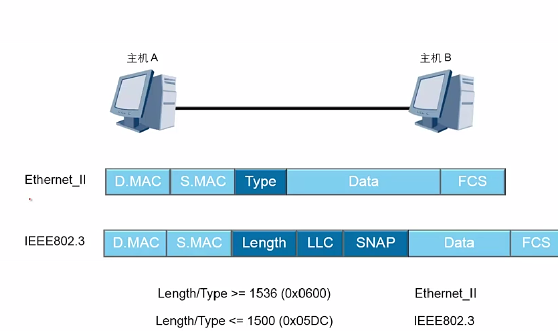 注意:从这里就能看出Etherent II和Ethernet 802.3的区别,即协议类型和协议长度