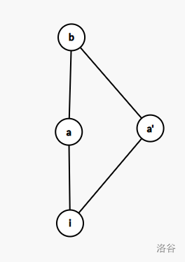 显然有 \(i\rightarrow a\rightarrow b\) 和 \(i\rightarrow a'\rightarrow b\) 两种走法,得到转移: