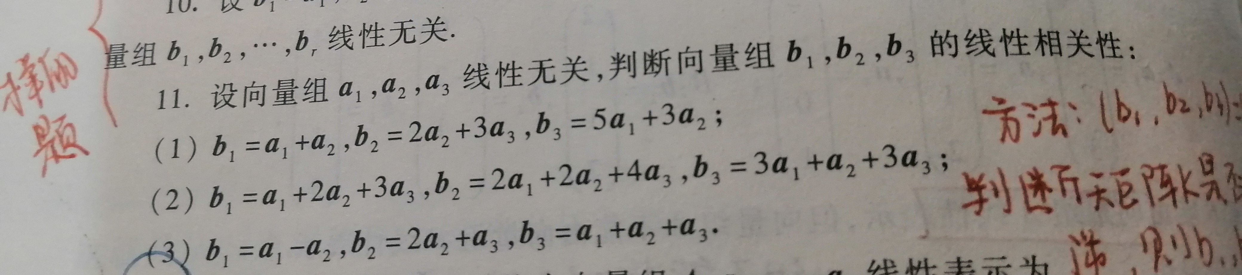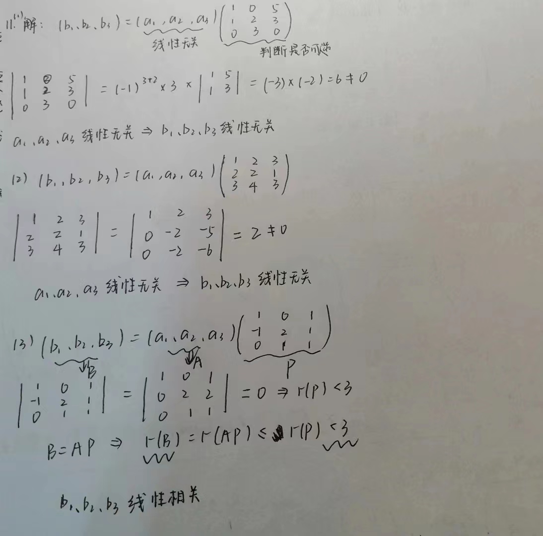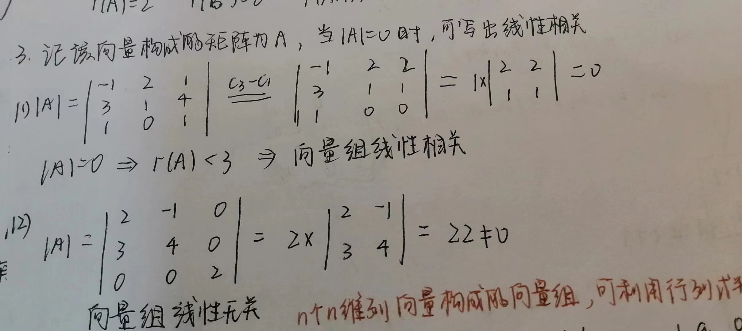 5.写成行列式的样子,判断行列式是否为0,为0则线性无关