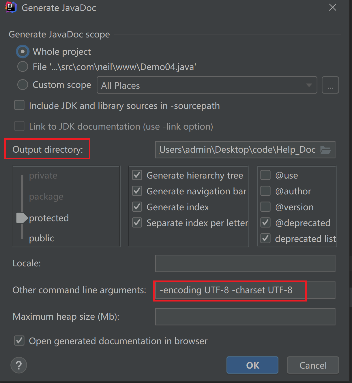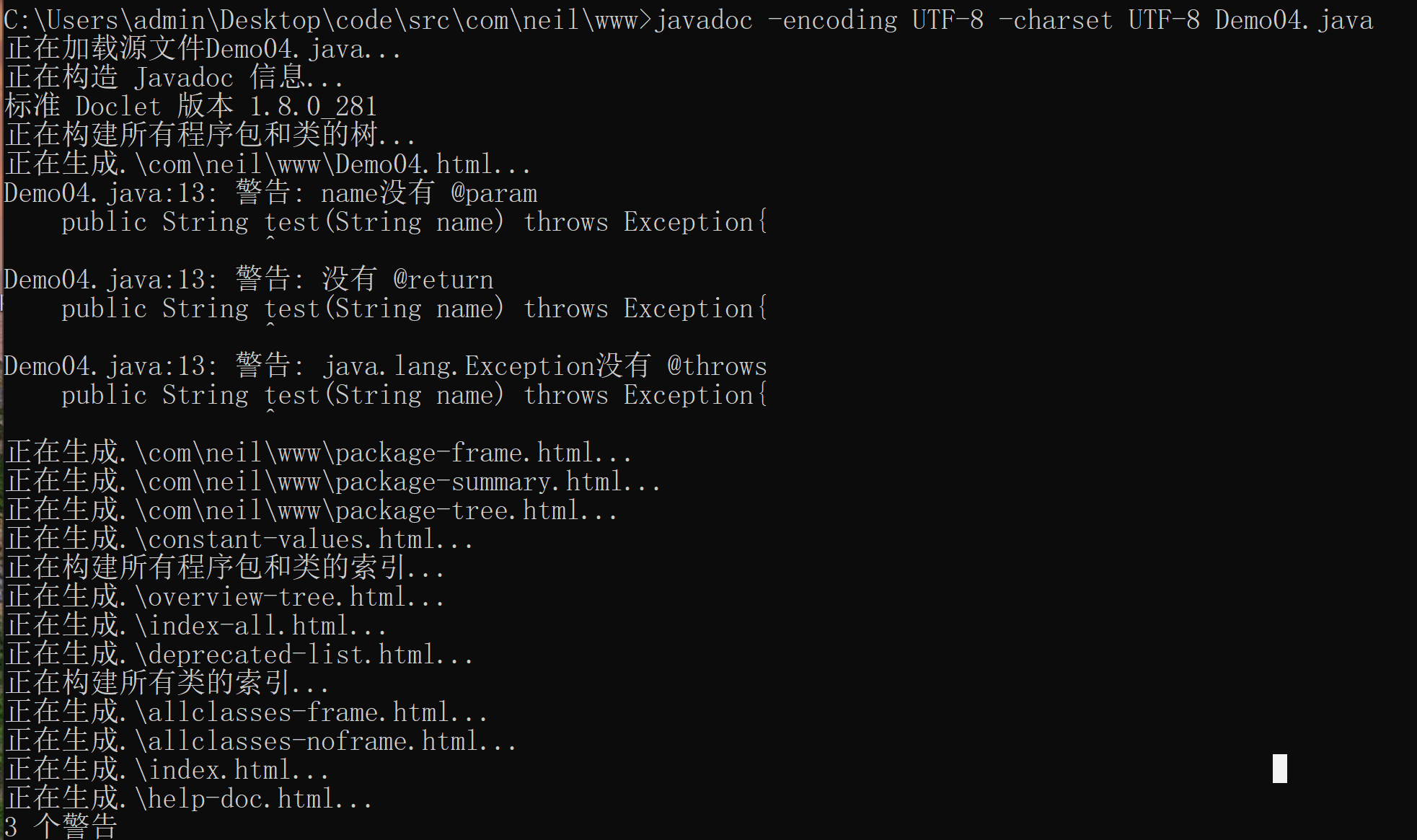 - javadoc -encoding UTF-8 -charset UTF-8 Demo04.java