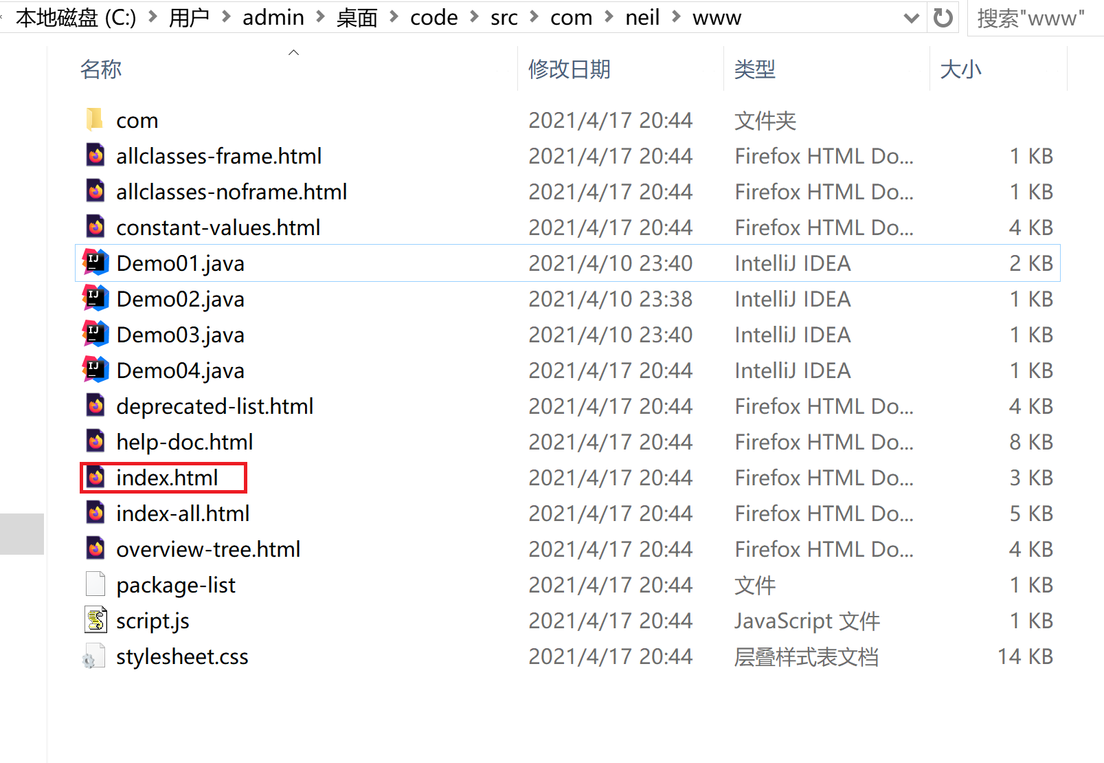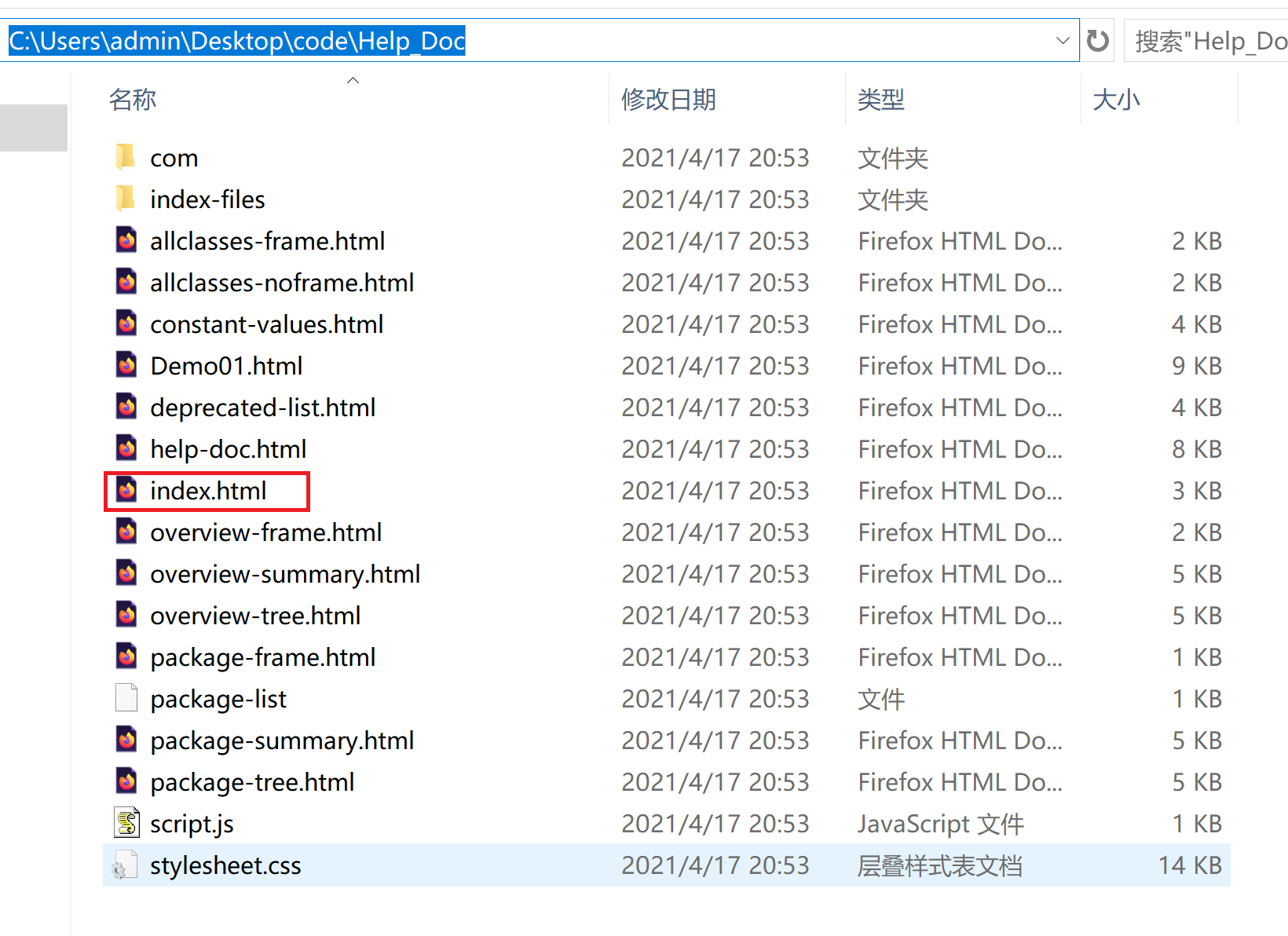 - 生成JavaDoc文件,打开index.html就可以查看文档了