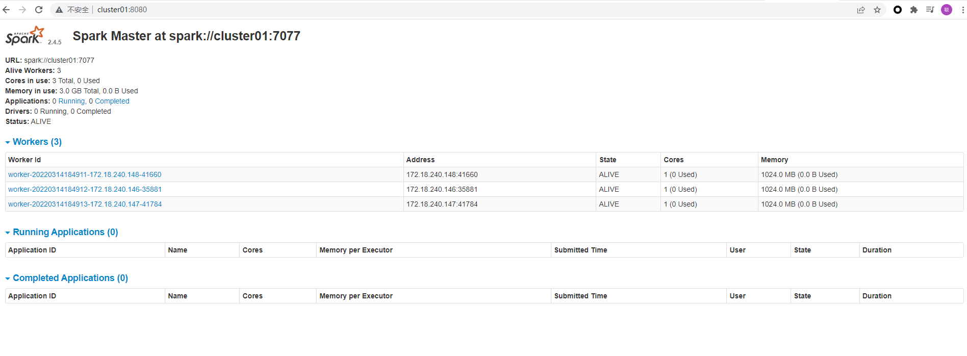 在浏览器输入cluster01:8080可以访问Spark的Web界面