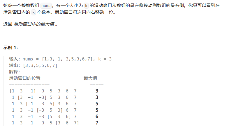 一开始想到用栈或队列维护最大值。因为滑动窗口是先进先出,栈不好用。队列虽满足特性但不能无脑入队,首先规定队首是当前窗口最大值,队首出队后的队首要是下个窗口的最大值,那么每次入队就应该保证队列里没有比自己小的元素,队首不能动只能从队尾出,想到双端队列。